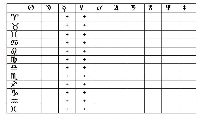 Наприклад, Венера відповідає за природу почуттів. Коли вона розташована у відповідному знаку Зодіаку, то природа почуттів матиме певну енергію вираження: