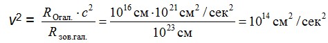 Тут ROгал — радіус монади нашої Галактики, Rзов.гал. — зовнішній радіус нашої Галактики. Отже ми отримали один із невідомих членів фундаментального рівняння — швидкість нашої Галактики: вона дорівнює 100 км/сек. Звідси ми отримуємо ту відстань від центра Всесвіту, яка так приголомшила автора цих рядків. Я не знаходив швидкості нашої Галактики в довідниках — і тоді звернувся до обсерваторії Національного університету ім. Т. Шевченка. Можна уявити мою радість, коли мені відповіли: 100 км/сек. А це означає, що вибудувана нами модель Всесвіту абсолютно правильна — в кожній своїй деталі. Правильні також параметри попередньої космологічної парадигми — маса й радіус. Інша річ, що з них невірно було змонтовано ейнштейнівську модель Світобудови.