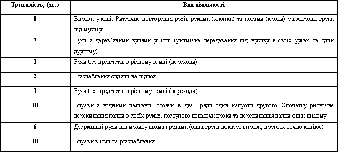 Таблиця 1 - Характеристика вправ уроку евритмії в 5 класі вальдорфської школи „Софія” м. Києва