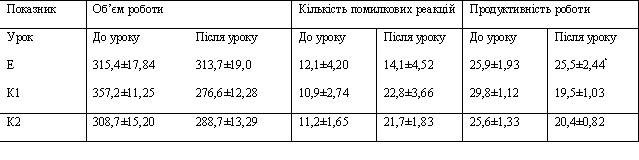 Таблиця 2 - Характеристика функціонального стану організму учнів за результатами коректурної проби (М±m)