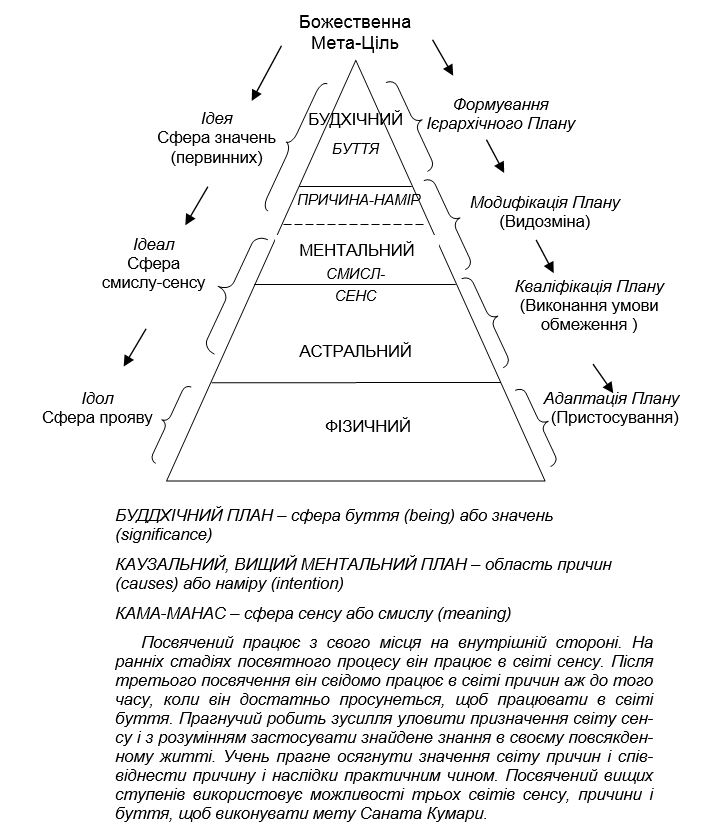 - У міру того як ці ідеї розглядаються і розвиваються, вони піддаються аналізу і, нарешті, втілюються як створені мислеформи.