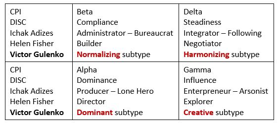 • Порівняння системи підтипів Віктора Гуленко із іншими 4-х компонентними типологіями.