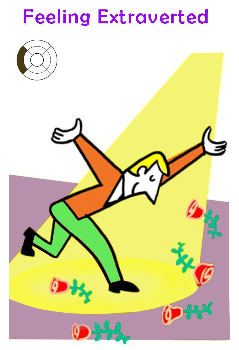 Для типу з екстравертними емоціями дуже важливим є поняття любові і допомоги іншим. Проте поняття любов включає в себе також протилежність – байдужість, а поняття допомоги іншим включає також потребу допомоги від інших. Людина даного типу з високим рівнем психологічної зрілості усвідомлює ці пари протилежностей і приймає в собі як любов так і байдужість, як допомогу іншим так і потребу в допомозі від інших. Проте, при нижчому рівні психологічної зрілості людина прилипає до однієї складової образу і витісняє другу, «погану» складову. Чим більше тип з екстравертними емоціями прагне бути люблячим і допомагаючим, тим більше він боїться бути байдужим і потребуючим допомоги. Чим більше такий тип ототожнюється з «образом себе» як люблячого і допомагаючого, тим сильніше почуття неповноцінності він відчуває при будь-якому натяку на свою байдужість до інших і потребу отримати щось від інших. При середньому рівні психологічної зрілості тип з екстравертними емоціями намагається подобатися іншим та бути потрібним, щоб отримати позитивну оцінку навколишніх для підтримки своєї самооцінки та свого образу люблячого та допомагаючого. Йому починає здаватися, що його люблять саме за його доброту і великодушність. І щоб його любили, йому треба весь час підтверджувати це. При цьому в нього зростає гординя від хибного відчуття того, що він всім допомагає, а сам ні від кого нічого не потребує. При ще меншій психологічній зрілості такий тип може мати нав’язливу потребу допомагати комусь. Він вимагає особливого ставлення до себе і дорікає іншим, що вони не оцінили його доброти та допомоги.