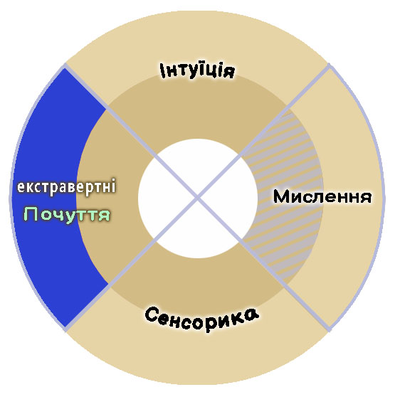 Тип із екстравертними емоціями відчуває емоційний стан навколишніх, відрізняє щирі емоції від фальшивих. Добре відчуває потреби навколишніх і прагне допомагати.