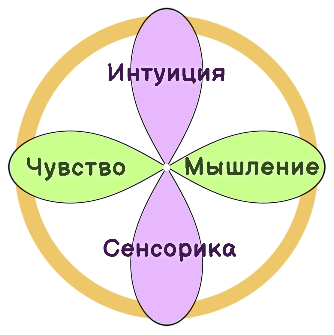 Ключевым элементом Юнгианской типологии являются четыре психические функции: Сенсорика, Чувство, Мышление и Интуиция, которые также можно назвать четырьмя видами интеллекта.
