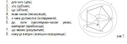 Природно, виникає запитання: «Чому, кому це вигідно?» Римська юридична формула опитування, містила в собі наступні елементи (питання): «хто - що - де - коли - з чиєю допомогою - для чого - яким чином - кому це вигідно», які становлять структурно-функціональну модель будь-якої події як системи (рис.1):