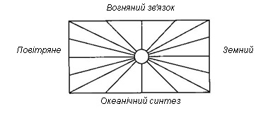 Саме цей стародавній символ, який виражає зв'язок з емоційною природою, а, отже, і з атлантичною свідомістю, указує на основу для прогресу і є тонкою силою, що стоїть за “прапорами всіх націй”. Прапори – це символи відданості народу своїй національній основі і своїм національним духовним завданням. Вони, звичайно, були занижені до позначення собою національного сепаратизму, егоїзму і національного патріотизму, але все таки за прапором стоїть точка могутності, через яку надихає народ його душу. Звичайно, поки що “крапки рухаються вперед в круг життя народу” нерівномірно; поки що бачиться лише квадрат особистісних реакцій народу і лінії його еволюційного наближення до глибшої свідомості – цю свідомість, що розвивається, ми називаємо “душею народу”. Одного разу, крапка займе своє місце в центрі квадрату і всі лінії зійдуться в цій крапці; тоді ми побачимо націю, спонукувану до активності внутрішньою духовною енергією, і лінії, які до цього сходилися всередину до центру, стануть каналами, або шляхами, якими в кожну фазу національної цивілізації і культури вливатиметься духовна енергія; тоді нація буде зв'язана – через крапку в центрі – з джерелом божественного натхнення, одним для всіх типів, всіх націй і всіх рас в часі і просторі.